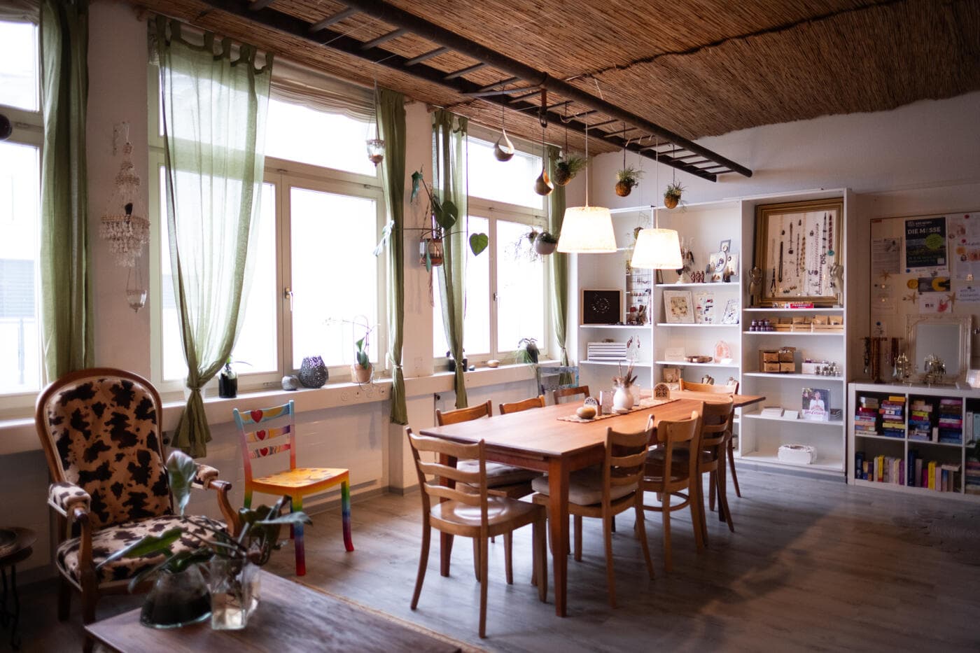 Unser Gemainschaftsraum ist der perfekte Ort, um sich mit anderen zu treffen und Beziehungen aufzubauen. Hier kannst Du dich mit Gleichgesinnten Menschen entspannen, plaudern und einfach die Zeit genießen. Das Zentrum ist nicht nur für Workshops gedacht, sondern eben auch für Menschen, die einen Ort Abseits des Alltags suchen, an dem sie sich treffen und entspannen können.